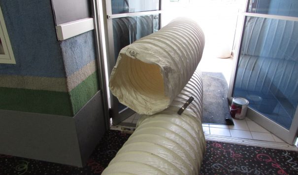 Our crews responded immediately to the situation. First the debris from the fire were cleared out and properly disposed. The next step was to treat the air in the bowling alley. To help clear the air in the building, a large scale vacuum/ filtration unit was utilized as the vastly open building required a larger machine.