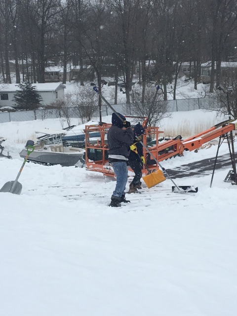 Along with our restoration services, we also had to provide our snow removal services for the Marina. Snow Storm Stella blew into the region March 12th and dumped a little over a foot of snow on the area. Thankfully this was a week before their planned sale-bonanza and we were able to clear out the lot in time for the event to be held.